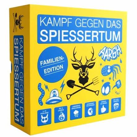 Kampf gegen das Spiessertum Familien-Edition Autoren: Angela Vögtli Illustratoren: Okrani Erscheinungsjahr 2022 Spieler 3 - 8 Spieler Alter ab 10 Jahren Dauer 90 - 30 Minuten Ansehen