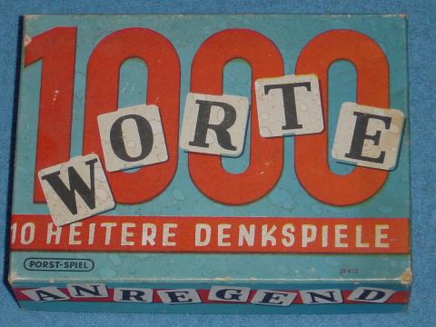 Am Titelbild als Porst-Spiel betitelt, die Regel lautet Spear-Spiel, Spear Spiele-Fabrik, Hanns Porst, Nürnberg Buchstaben-Lege-Spiel in 10 Regelvarianten