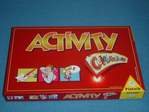 Eine neue Ausgabe mit den Regeln von Activity Original 2 und der Einarbeitung von Spezialregeln entsprechend dem Partner Celebrations – manche Begriffe muss man mit vollem Mund umschreiben! Schokolade ist nicht enthalten, dafür aber 5 Einladungskarten zu einem Spieleabend. Die Begriffe auf den 220 Karten kommen aus den Bereichen Kino+TV, Trends + Lifestyle, Fun+Freizeit sowie Stars+Sternchen.