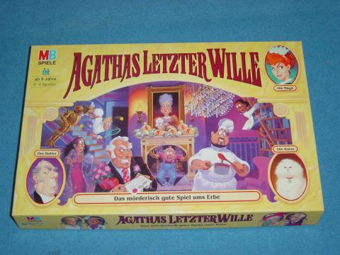 Aufwendig ausgestattetes Detektivspiel um das Testament von Tante Agatha, erben wird derjenige, der das Haus lebend verläßt, denn wer in eine der fünf Fallen tappt ist für immer aus dem Rennen, tödlich sind Kamin, Kronleuchter, Treppe, Ritterrüstung und Leiter. Wer überlebt, bis der Detektiv die Haustür erreicht, hat gewonnen und geerbt. Kleinere Schachtel Erstauflage 1995, # 14227