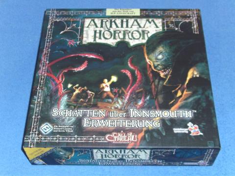 Inmitten der Roaring Twenties wächst in Arkham der Schatten der Ancient Ones, die versuchen in unsere Welt einzudringen. Die Spieler arbeiten gemeinsam als Ermittler um die Dimensionstore zu schließen oder den Ancient One zu besiegen. Ein Zug besteht aus fünf Phasen, Erhaltungsarbeiten, Bewegung, Arkham Begegnungen, Begegnungen mit anderen Welten und Mythos. Das Spiel folgt eher komplexen Regeln, wenn der Ancient One erwacht, wird in Runden gegen ihn gekämpft, bis er entweder besiegt ist oder alle Ermittler eliminiert sind. Die Erweiterung bringt verlegt das Geschehen in ein verfallenes Fischerdorf an der Küste von Massachussetts und die Ermittler müssen die schrecklichen Deep Ones aufhalten und sich den Geheimnissen der Familie Marsh stellen. Es gibt neue Ermittler, neue Ancient Ones, neue Monster und neue Karten zur Nutzung mit dem Grundspiel, und es gibt auch ein neues Brett und neue sogenannte Vorboten sowie persönliche Story-Karten und den Aufstiegspfad für die Deep Ones.