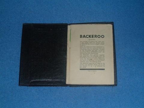 Backeroo Werbespiel, Pferdewetten mit gelochten Karten, diese werden gemischt, die Einsätze plaziert, unter den Löchern der Bankerkarte erscheinen die Anfangsbuchstaben der Pferde. Ludografische Angaben Verlage: PIRELLI TYRES/REIFEN Inventarnummer: 10135 Kategorien: Familie, Werbe Spieler 2 - 8 Spieler Alter 8 - 99 Jahren Dauer bis 30 Minuten