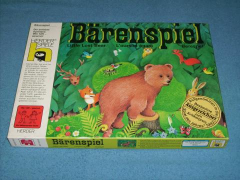 Der kleine Bär hat sich beim Spielen und Beeren naschen im Wald verirrt, die Kinder wollen ihm gemeinsam nach Hause helfen. Die 100 Kärtchen werden verdeckt auf den Tisch gelegt. Der Spieler am Zug würfelt mit 3 Würfeln, für jeden gewürfelten Bären darf man ein Kärtchen aufdecken, bei einer Bärenspur darf mit diesem Würfel nochmals gewürfelt werden. Die Kärtchen werden vom Rand nach innen aufgedeckt, erscheint ein Wegkärtchen, darf ein weiteres Kärtchen umgedreht werden. Ein Tier muss umgangen werden, Hindernisse können mit bereits aufgedeckten Wegkärtchen überdeckt werden, wenn ein für einen Bären auf das Aufdecken verzichtet wird. Ist der Bär gefunden, wird 7x gewürfelt, für einen Bären geht der Bär 3 Schritte, für die Spur 2 Schritte und für ein Waldzeichen 1 Schritt, ist der Bär nach 7 Zügen am Waldrand haben alle gemeinsam gewonnen.
