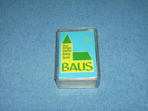Werbespiel für die Arbeit des Gustaf-Adolf-Werks, es werden Gebäude errichtet, um Gemeinden in der Diaspora zu unterstützen. Bauvorhaben werden ausgelegt, man hat 8 Karten, nimmt auf und wirft ab, liegt für ein ausliegendes Bauvorhaben die Genehmigung vor, darf man nach genauen Regeln die dazugehörigen Karten ablegen, immer mindestens 2. Wer ein Bauvorhaben mit der letzten Karte abschließt, oder nach Abschluss eines Bauvorhabens noch eine Karte abwerfen kann, gewinnt, de Sieger eine Runde bekommt 5 Gutpunkte, die anderen Minuspunkte im Wert der Handkarten, ausgehend von einem Startkapital von 10. Wer zuerst 30 Punkte erreicht, gewinnt. Herausgegeben zum Gustaf Adolf Fest 1975