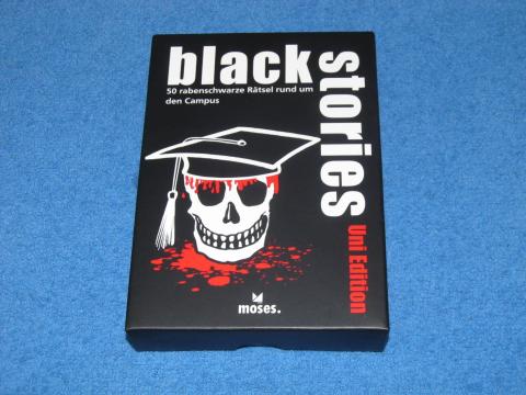 Der Geschichtenerzähler heißt Gebieter, er liest die Geschichte auf der Vorderseite der Karte vor. Die anderen Spieler können beliebig Fragen stellen, müssen diese allerdings so formulieren, dass der Gebieter mit ja oder nein antworten kann. Der Gebieter kann auf falsche Annahmen hinweisen oder von Irrwegen ablenken. Die Antwort auf der Rückseite der Karte ist die einzig richtige Lösung. Diese Ausgabe erzählt 50 rabenschwarze Geschichten zum Leben auf dem Campus, vom Geschehen in Vorlesungen oder beim BaföG Amt, WG-Partys und verschwundenen Professoren - Gruseln statt Prüfungsstress.