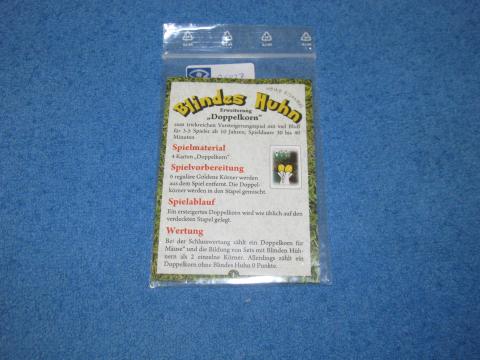Man will Küken ersteigern und Blinde Hühner vermeiden. Drei Karten werden als Paket versteigert. Man bezahlt das Höchstgebot mit vorhandenen Karten an den Auktionator, dieser als Höchstbieter bezahlt eine Karte an jeden Mitspieler. Am Ende punktet man für Farbmehrheiten und Kartenwerte in drei Farben sowie Blinde Hühner und goldene Körner. Doppelkorn– Ein Doppelkorn zählt für Mäuse und Sets mit Blinden Hühnern als 2 einzelne Körner, ist allerdings 0 Punkte wert, ohne Blindes Huhn.