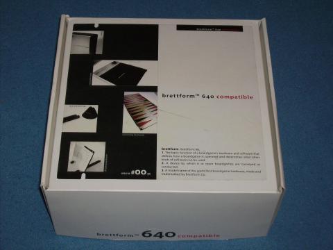 Ein modulares System für Spiele, der Autor trennt die Spiele in Hardware und Software, mit Hardware meint er d Aufbewahrungsbox, Rahmen für Bretter etc, mit Software die Regeln, Spielbretter und spezielle Steine nur für ein bestimmtes Spiel. Steine und Bretter sind meist aus Plastikfolien gemacht, damit kann man sehr viele Spiele auf kleinstem Raum unterbringen. Die brettform 640 Box enthält Rahmen, Spielbrettbasen, Schutzumschläge für Regeln, Ablageständer für Steine, Würfelbecher und Handbuch, dazu die Software für Pueblo, Orapa mine+, Dudo, GeneralA, Backgammon, Schach und Dame.