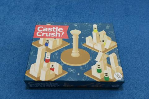 Im Setz- und Bauspiel Castle Crush! baut man Burgen und greift dann Burgen der Gegner an. Drei Runden bestehen aus drei Phasen: 1) Bauen - man nimmt Steine laut Vorgabe und verbaut sie in korrekter Ausrichtung auf dem Fundament, jeder Stein bringt Grundwert x Stockwerk. Dann setzt man den König irgendwo in die Burg, den General nur aufrecht auf das Fundament. 2) 2 x Angriff - man stellt den Hammer auf die Platte und lässt ihn ohne Schubsen in eine Richtung fallen und punktet Grundwert + Figurenwert für Steine, die den Tisch berühren. 3) Aufräumen - Berühren König und General nicht den Tisch, bringen sie Punkte, alle Steine, die nicht auf Fundamenten stehen, gehen in den Vorrat. Im Bauspiel wird nur gebaut, man soll mit vorgegebenen Steinen und den Figuren König und General eine Punktevorgabe erzielen. Im schnellen Spiel gibt es nur für das Angreifen Punkte. In der Erweiterung Cubes & Cards kommen Familienmitglieder ins Spiel. Jede Farbe ist ein Königreich mit zwei Familienmitgliedern mit zwei Fähigkeiten für die unterschiedlichsten Spielphasen; außerdem Mini-Gebäude - Gefängnis und Festung; Bausteine - Schatzsteine mit Kronen, Juwelen und Flüchen. Die Eigenschaften dieser Zusätze beziehen sich alle auf Bauen, Angriff und Wertung, die Burg wird in der Bauphase nicht mehr gewertet, nur in der Wertungsphase, und es gibt eine neue Phase Zuteilung - ein Spieler mit weniger als drei Steinen bekommt Steine. Wunderbare Holzsteine, mit denen das Bauen der möglichst punkteträchtigen Burg Spaß macht und auch die Angriffe sind witzig, den „Hammer“ einfach fallenlassen, vertikales Bowling sozusagen – edel, gelungen und macht Spaß!