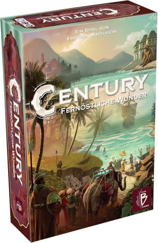 Gewürzinseln in Fernost. Man bewegt sein Schiff auf das nächste Plättchen; will man weiterfahren, legt man auf jede durchquerte Insel ein Gewürz. Sind Schiffe auf der Zielinsel, erhalten deren Besitzer ein Gewürz. Dann lädt man vorhandene Gewürze ein und kann auf einer Insel mit Stützpunkt - eventuell vorher errichten - eine Marktaktion = Gewürze tauschen machen, im Hafen eine Hafenaktion = Gewürze für Punkte abgeben oder überall eine Ernteaktion = 2 Ingwer nehmen. Nimmt jemand sein 4. Punkteplättchen, wertet man Punkte und Boni, sichtbare Werte auf der Spieleablage und Gewürze außer Ingwer. Mit Century Gewürzstraße zu Sand To Sea kombinierbar.