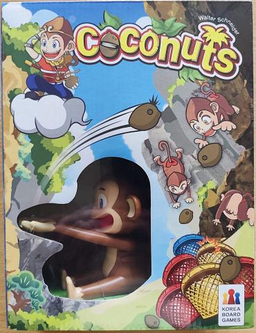 Ein König für den Affenberg wird gesucht. Jeder Spieler hält die Schleuder hinter der roten Linie seines Bretts. Schafft er es, eine Kokosnuss in einen Becher zu befördern, nimmt er den Becher, auch vom Gegner, und stellt ihn auf einen freien Platz auf seinem Brett. Sind alle drei unteren Plätze besetzt, baut man an der Pyramide weiter. Nimmt man einen roten Becher, hat man noch einen Zug. Mit zwei „magischen“ Karten kann man das Ergebnis eines Schusses oder die Regeln für einen Zug verändern. Komplettiert jemand die Pyramide oder sind alle Nüsse in Bechern, gewinnt man mit der Pyramide oder mit den meisten Kokosnüssen in seinen Bechern.