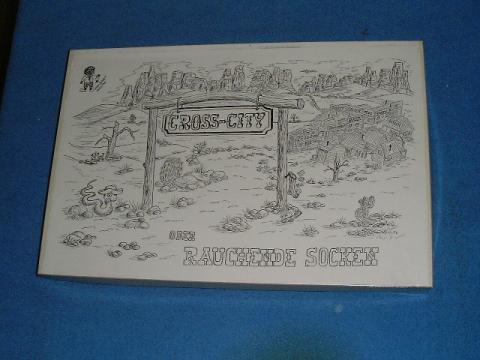Ein Spiel im Westernmilieu, mit höchst originellen Elementen wie Rivalität der Leichenbestatter nach einem Pistolenduell usw. usw., das alles in einem sehr verwandlungsfähigen Städtchen, Cross-City eben, wo alles kreuz und quer und durcheinander geht. Es gewinnt, wer der reichste Bürger der Stadt wird, entweder mit 6000 $ oder der reichste nach 2 Stunden Spielzeit, immer nur mit mindestens einem eigenen Geschäft.