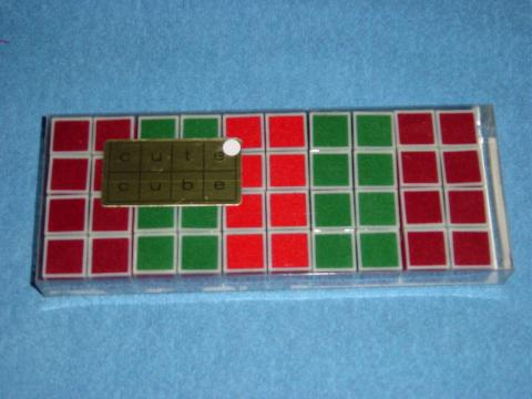 Würfel, mit patentierter Mechanik zusammengesetzt, die Drehen und Kippen der Würfel erlaubt, das Zusammensetzen geometrischer Gebilde, als Solitärspiel oder gegen die Zeit im Wettbewerb mit anderen Spielern.