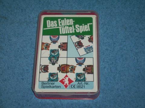 9 Eulen-Karten zeigen immer an jeder Kante mittig eine halbe Eule die 9 Karten müssen so ausgelegt werden, dass sich in jeder Richtung die Eulen passend ergänzen.