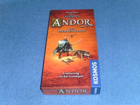 Die Helden beschützen das Land Andor vor bösen Kreaturen, die zur Königsburg vordringen. Wenn zu viele Kreaturen in die Burg eindringen, verlieren alle Spieler. In fünf Legenden müssen sie die Burg verteidigen und Legendenziele erfüllen. Ein Erzähler läuft Buchstabenfelder entlang. Gibt es für ein Feld eine Legendenkarte, wird sie vorgelesen - sie erzählt die Geschichte, bringt Kreaturen und Hilfsmittel ins Spiel und nennt Legendenziele sowie Zusatzregeln. Jeder Held verfügt über 10 Stunden/Tag; der Erzähler bewegt sich nach Besiegen einer Kreatur und Zugende aller Helden. Erreicht der Erzähler das Ende seiner Buchstabenleiste, müssen die Ziele erfüllt sein. Der Sternenschild, die erste Erweiterung zu Die Legenden von Andor, verlangt die Erfüllung von drei Zielen: Burgverteidigung wie im Grundspiel, eine Fürstenaufgabe laut Karte A3 erfüllen und eine durch Würfelwurf ermittelte Bedrohung bei Karte C abwehren. Ist diese Bedrohung abgewehrt, endet das Spiel, das heißt, die Fürstenaufgabe muss vorher bewältigt werden. Dazu kommt ein neues System der Legendenkarten. Diese werden wie gewohnt alphabetisch geordnet, doch bei manchen Buchstaben wählt man eine von mehreren Karten aus, die anderen kommen bei weiteren Partien zum Einsatz. Der Sternenschild deckt Monster ab und verhindert deren Bewegung. Es kommt eine von sechs Bedrohungen ins Spiel, die aber nicht als Kreaturen gelten. Eine schöne Ergänzung zu einem schönen Spiel, das aber eine Beschäftigung von Grund auf verlangt, man muss sich in die Materie einarbeiten, doch das lohnt sich, man wird mit einem tollen, spannenden Spielerlebnis belohnt!