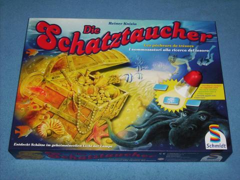 Ein altes Wrack mit wertvollen Schätzen liegt am Meeresgrund, die Spieler wollen die Schätze bergen, natürlich sind die Schätze umso wertvoller je tiefer sie liegen. Als Spielfigur fungiert eine kleine Taschenlampe, sie wird auf das erwürfelte Feld gesetzt – schimmert etwas unter der Lampe, drückt man den Knopf und schaut was man , Seeungeheuer bekämpft man mit den Würfeln, Schätze kann man bergen oder liegen lassen und tiefer tauchen, d.h. noch einmal würfeln. Hat man eine gewisse Anzahl Schätze geborgen, bekommt man das entsprechende Bonus-Plättchen. Wer am Ende die meisten Punkte gesammelt hat, gewinnt.