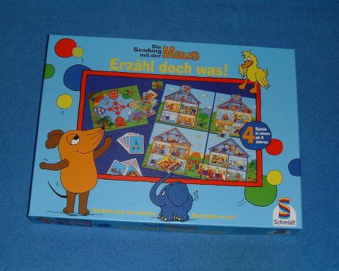Mit vier lustigen Spielvarianten lernt man hier mit der Maus, wie man sich Lach- und Sachgeschichten besser merken kann und sie dann mit einfachen Worten selbst erzählt. Damit wird die Fantasie angeregt und die Sprachentwicklung trainiert. „Unterwegs mit der Maus“ ist ein Kombinationsspiel. Kärtchen müssen passend auf die eigene Tafel gelegt werden, die Situationen sind in zeitlicher Abfolge dargestellt. „Schnell geschaut“ ist ein Reaktionsspiel, ein Spielleiter kombiniert 3 passende und eine nicht passende Karte, wer die nicht passende findet, bekommt einen Punkt. „Was könnte das sein“ ist ein Erzählspiel, Begriffe auf Karten werden beschrieben, die Kinder sollen den Begriff nennen. „Quatschgeschichten“ ist ein Nacherzählspiel, jeder hat 3 Karten und erzählt eine Geschichte, in der die Gegenstände auf den Karten vorkommen, der nächste erzählt die Geschichte nach und baut seine Gegenstände ein, usw. Für Fehler gibt es einen Minuspunkt.
