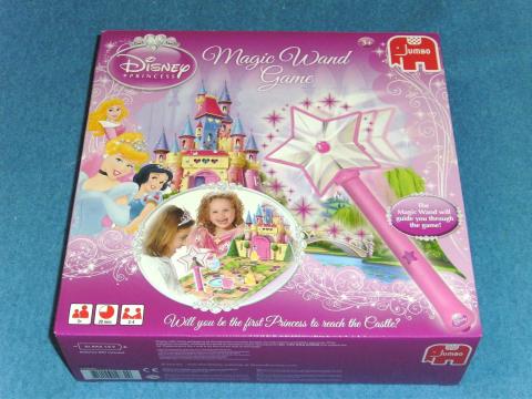 Großer Ball im Königsschloss! Die Fee hat für die Prinzessinnen ein Spiel vorbereitet, die Siegerin darf den Ball eröffnen. Alle Prinzessinnen stehen am Eingang zum Zaubergarten. Die Prinzessin, die zuerst das Schloss erreicht, gewinnt. Wer dran ist, schwenkt den Zauberstab und führt die Anweisung, die er gibt, aus. Meist lässt er die Prinzessin 1 bis 6 Felder weit ziehen; sie kann sich in jede Richtung entlang der Pfade bewegen, außer sie sind durch einen Magischen Pfad blockiert und sie kann nicht zusammen mit einer anderen Prinzessin auf einem Feld stehen. Manchmal hat der Zauberstab aber auch besondere Zaubersprüche parat: Er erlaubt der Prinzessin, einen der Magischen Pfade zu drehen und dann 1 bis 6 Felder zu ziehen, oder, wenn man möchte den Platz mit einer anderen Prinzessin tauschen oder die vom Zauberstab genannte Anzahl Felder zu ziehen. Im ganzen Garten verstreut, gibt es Magische Felder; auf diesen ist man sicher vor einem Platztausch, auf Zauberstab-Feldern bekommt man einen weiteren Zug. Natürlich gibt es im Garten auch Böse Kräfte, beendet man den Zug auf einem Feld einer Bösen Figur, muss man aussetzen. Findet man einen Diamanten, kann man sich damit vor Zaubersprüchen schützen. Man kann immer nur einen Diamanten besitzen und nach der Verwendung gibt man ihn zurück! Wenn schon nicht Disney‘s Magic Kingdom, dann wenigstens Disney’s Magie im Spiel. Auch im dritten Disney Spiel nach Spiegel und Schuh wird die Magie der Welt von Walt Disney perfekt transportiert, einfach schön, ein gelungenes Zusammenspiel von Ausstattung und Mechanismus zur Begeisterung der Kinder.