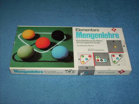 Legespiel in Form eines Lottos mit den Grundbegriffen der Mengenlehre, einschließlich der Verknüpfungszeichen Mit ausführlicher Anleitung und Erklärung der Mengenlehreprinzipien für die Eltern Vermutlich 1972, da Hinweis auf Änderung des Lehrplans 1972