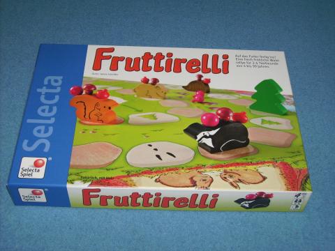 Die Tier-Eltern sind fürsorglich und eifrig im Wald unterwegs und sammeln Leckereien für ihre Tier-Kinder, Äpfel, Pilze und Beeren. Die vier Tiere Eichhörnchen, Dachs, Igel und Hase beginnen das Spiel in der Mitte des Plans, die Futterstücke werden auf den dafür vorgesehenen Plätzen ausgelegt, auf den freien Plätzen sprich Lichtungen stehen zu Spielbeginn je zwei Bäume. Wer dran ist würfelt und zieht sein Tier dementsprechend weiter. Fremde Tiere darm man überspringen, das Feld wird mitgezählt, man darf den Zug auch auf einem Feld beenden, wo schon ein anderes Tier steht. Erreicht man ein Baumfeld, darf man einen Baum auf den Weg stellen, aber nicht auf ein Sonderfeld. Sonderfelder sind die Futter- und Zielfelder sowie die Baumfelder selbst. Der eingesetzte Baum versperrt den Weg, denn ein Baum ist ein Hindernis und darf nicht übersprungen werden. Für ein Tier, das zwischen zwei Bäumen eingesperrt ist, kann durch Würfelwurf befreit werden, der Spieler hat drei Versuche um eine Eins zu würfeln, damit darf er einen Baum versetzen und ein Feld weit ziehen. Wer ein Futterfeld erreicht, nimmt sich ein Stück, wenn er es noch nicht hat, trifft man ein Tier auf einem Feld, darf man ihm ein Stück wegnehmen, aber wieder nur etwas, das man noch braucht. Futterfelder und auch die Zielfelder vor dem Unterschlupf der jeweiligen Tiere muss man mit genauem Wurf erreichen. Wer als Erster sein Zielfeld mit drei Stück Futter genau erreicht, hat gewonnen. Ein sehr hübsches Lauf/Sammelspiel mit einfachen Regeln, das dennoch mit dem Bäume versetzen erstes taktischen Denken ermöglicht.