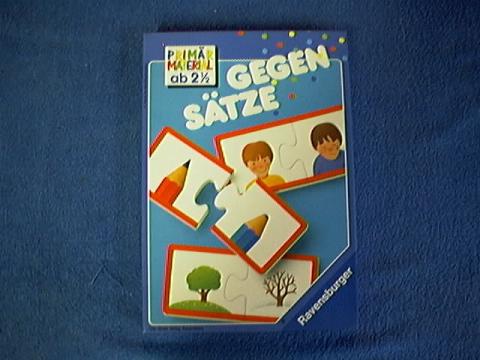 Gegensätze Dieses Spiel ist das Gegenteil zu "Was paßt zusammen", hier müssen die Kinder die Gegensätze zusammenbringen, um die Bilder zu vollenden. Ludografische Angaben Verlage: Otto Maier Verlag Ravensburg Inventarnummer: 5875 Kategorien: Kinder, Lernen Erscheinungsjahr 1992 Spieler 1 - 4 Spieler Alter 2 - 5 Jahren Dauer bis 20 Minuten