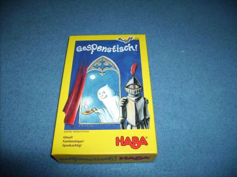 Auf Burg Fürchterlich verkleiden sich die kleinen Gespenster als Schreckgespenster und versuchen, einander zu erschrecken. Jeder Spieler hat ein Gespenst und drei Schreckpunkte, jedes der Gespenster sucht sich zu Beginn ein Zimmer aus, in dem es anfangen möchte. Die Spieler sind abwechselnd Schreckgespenst. Das Schreckgespenst nimmt die 6 Zimmerkarten, sucht sich daraus geheim eines der Zimmer aus und legt die entsprechende Karte verdeckt vor sich ab. Dann ziehen alle anderen Spieler ihr Gespenst in ein angrenzendes Zimmer, weil es alle noch ganz junge, kleine Gespenster sind, können sie nicht durch Mauern gehen, sondern können nur durch einen Durchgang in ein anderes Zimmer ziehen. Jetzt wird die Zimmerkarte aufgedeckt, die das Schreckgespenst ausgewählt hat - alle Gespenster, die in diesem Zimmer stehen, werden vom Schreckgespenst erschreckt und müssen einen Schreckpunkt abgeben. Steht die Figur des Schreckgespensts auch in diesem Zimmer, muss das Schreckgespenst keinen Schreckpunkt abgeben. Dann beginnt die nächste Runde und der nächste Spieler verwandelt sich in das neue Schreckgespenst. Hat ein Spieler keine Schreckpunkte mehr, endet das Spiel und es gewinnt, wer noch am meisten Schreckpunkte übrig hat, bei Gleichstand auch mehrere Spieler gemeinsam. Gespenstisch ist ein ganz simples Ratespiel, bei dem man einfach hoffen muss, dass das Schreckgespenst nicht dort auftaucht wo man grade hingezogen ist, und das Schreckgespenst bei der Zimmerwahl auch auf mögliche Zugänge in andere Zimmer achten muss. Erste taktische Überlegungen werden trainiert.