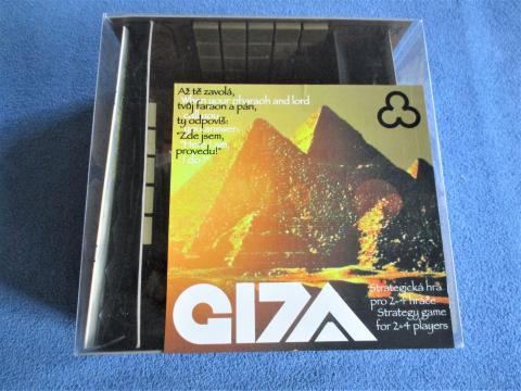 Eine Pyramide in ihrer Einfachheit schön und genial, so versucht es auch das Spiel GIZA. Eine einfache Legeregel, ein ausgeklügeltes Mehrheitenprinzip in 3D umgesetzt und 4 Spielvarianten. Dazu noch 120 hölzerne Spielsteine und ungeahnte Möglichkeiten für Strategen und Taktiker. Die Spieler bilden zusammen eine Pyramide. Jeder spielt mit seiner eigenen Farbe. Einen Stein ins nächste Stockwerk zu platzieren ist nur erlaubt, wenn unter der gewünschten Position keine Steine mehr fehlen und der Spieler selbst mit seinem gelegten Stein eine Mehrheit hat. Dazu kommen noch Jokersteine, die so manchen Plan zunichtemachen.