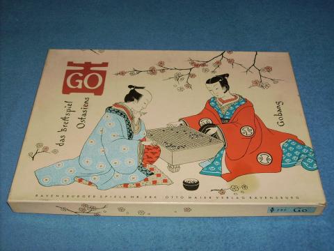 Neben dem Brettspielklassiker GO werden noch zwei kürzere Varianten des Spiels präsentiert, Gomoku und Gobang. Bei GO setzen zwei Spieler abwechselnd ihre Steine auf die Kreuzungspunkte des quadratischen Rasters und versuchen, Gebietsgewinne zu erzielen und gegnerische Steine einzuschließen. Bei Gomoku soll eine Fünfer-Reihe in beliebiger Richtung gebildet werden und bei Gobang geht es ebenfalls um Fünferreihen wie in Gomoku, nur kommt noch eine Schlagmöglichkeit dazu. Sehr alte Ausgabe mit dreistelliger Artikelnummer und dem Puppenlogo mit Profil-Kopf statt Kreis