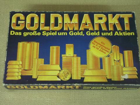 Wirtschaftsspiel zum Thema Termingeschäfte auf dem Goldmarkt, es gibt 3 Gewinnstrategien: Aktienmonopol, Goldmonopol oder Geldvermehrung. Man zieht nach Würfelwurf, nach dem Tageskurs können Gold und Aktien gekauft werden, Kurskarten in roten Zahlen zeigen Termingeschäftskarten-Erwerb an. Das Spiel endet, wenn ein Spieler bankrott ist - nach Abrechnung nach dem neuen Tageskurs gewinnt der Spieler mit dem größten Vermögen – oder ein Spieler hat alle Aktien von 2 Goldminen und ein Aktienpaket einer driten Mine, dann erfolgt eine komplizierte Schlussphase. Als 3. Möglichkeit ergibt sich das Goldmonopol, auch hier gibt es eine Schlussphase nach genauen Regeln.