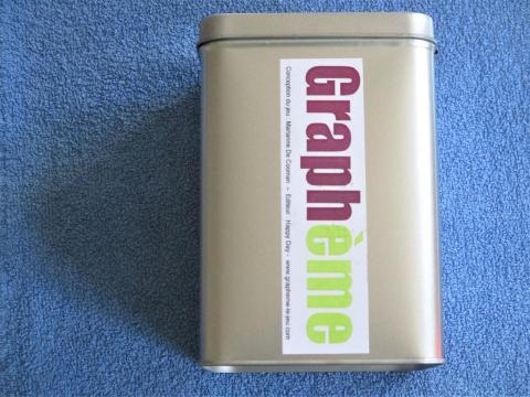 12 Beutel enthalten Buchstaben für je ein Wort, jeder Buchstabe zeigt ein Motiv für das Wort, das entstehen soll. Man soll möglichst viele Wörter mit dem gleichen Motiv rekonstruieren. Jeder hat ein Wort, jedes wird allen Spielern gezeigt, dann werden die Buchstaben verdeckt verteilt und von jedem Spieler danach offen ausgelegt. Reihum wird gewürfelt: 1 - nimm einen Buchstaben von irgendeinem Spieler. 2 - Nimm vom rechten Nachbarn maximal zwei Buchstaben eines Worts. 3 - Nimm vom linken Nachbarn maximal drei Buchstaben eines Worts. 4 - Tausche bis zu vier Buchstaben eines Worts mit einem Spieler. 5 - Erhalte einen Buchstaben von jedem Spieler. 6 -Passe. Hat jemand keine Buchstaben mehr, bilden alle anderen Worte und werten.