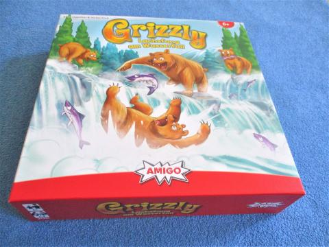 Als Bären gehen wir am Wasserfall auf Lachsfang. Der Spielplan wird als Fluss mit Wasserfall ausgelegt, jede Bahn wird mit sechs Wasserplättchen bestückt. Zehn weitere Plättchen werden mit dem Felsen obenauf gestapelt, der Rest ist Wasservorrat. Lachse liegen unten im Fluss und zu Beginn auf den Wasserplättchen, die der Wasserfallkante am nächsten sind. Zu Beginn einer Runde würfelt der Startspieler die Wasserfallereignisse für alle Bahnen: 1) Wasser fließt -> ein Plättchen wird in die Bahn eingefügt, an der Kante fallen Plättchen nach unten, Bären und Lachse darauf fallen mit. 2) Lachse springen hoch und werden auf Wasserplättchen der Bahn gelegt, beginnend an der Kante nur ein Lachs pro Plättchen und nicht auf Wasser mit Bär. Danach bewegen sich die Bären, reihum, beginnend mit dem Startspieler, beliebig weit auf orthogonal benachbarte Plättchen; nicht auf besetzte Plättchen und ohne Überspringen von Bären. Felsen zwischen Bahnen blockieren Wechseln der Bahnen an dieser Stelle. Trifft man mit seinem Bären auf einen Lachs, nimmt man ihn an sich; kehrt ein Bär zum Bärenfelsen zurück, sichert er seine Lachse. Ein Bär, der beim Fließen des Wassers den Wasserfall hinunterrutscht, verliert ungesicherte Lachse und beginnt am Bärenfelsen neu. Bricht man den Wasserstapel unter dem Felsen an, gewinnt man am Ende der Runde mit den meisten Lachsen; sind alle Lachse gesammelt, gewinnt man sofort mit den meisten. Einfach hübsch, einfach einfach, einfach gut - Die Ausstattung ist gelungen, der Mechanismus einfach, das Quäntchen Taktik peppt das Würfeln auf! Ein attraktives Spiel, gleichermaßen gut für Kinder und Familien.