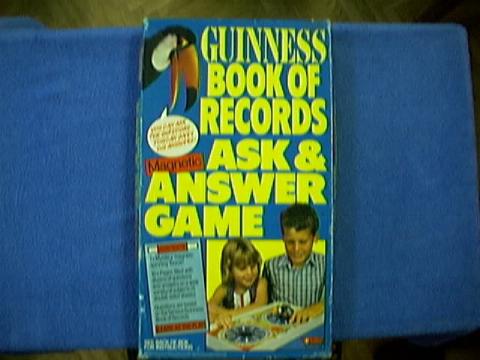 GUINNESS BOOK OF RECORDS MAGNETIC ASK & ANSWER GAME Quizspiel, 10 doppelseitig bedruckte Bögen mit Fragen und Antworten, magnetischer Tucan zeigt mit Schnabel auf die Antworten Ludografische Angaben Verlage: Jotastar Inventarnummer: 10846 Kategorien: Familie, Quiz Erscheinungsjahr 1982 Spieler 2 - 4 Spieler Alter 8 - 99 Jahren Dauer bis 45 Minuten