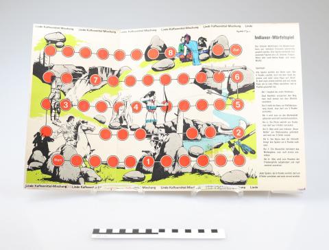 Indianer-Würfelspiel Dieses Spiel ist in folgenden Sprachen veröffentlicht: Deutsch Ludografische Angaben Verlage: LINDE Inventarnummer: 5033 Kategorien: Kaffee, Laufspiel, Werbespiel