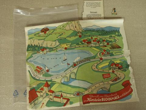 KIRSTEIN BLOCKMALZ Werbespiel, zerrissener Bogen ca. A3, Regel extra Mechanismus Laufspiel Druck: Waldheim-Eberle, Wien 1 Figur (Papier, war auszuschneiden) ist vorhanden Ludografische Angaben Verlage: KIRSTEIN Inventarnummer: 12509 Kategorien: Figuren bewegen, Laufspiel, Würfel, Werbe Spieler 1 - 8 Spieler Alter 6 - 99 Jahren Dauer bis 45 Minuten