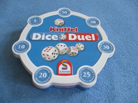 Ein Klassiker der Würfelspiele um Poker-ähnliche Kombinationen, neu interpretiert: Man nutzt fünf Würfel, die Zahlen 2, 4 und 6 sind rot, die Zahlen 1, 3 und 5 schwarz. Der Unterteil der Dose fungiert als Würfelteller und hat sieben Positionen für je vier Chips pro Wert: 5 für zwei Paare, 10 für einen Dreierpasch, 20 für eine Kleine Straße von vier aufeinanderfolgende Würfelwerte, 25 für einen Flush, 30 für ein Full House, 40 für Viererpasch und 50 für eine Große Straße aus fünf Würfeln. Für alle Resultate außer dem Flush sind die Farben unbedeutend, im Flush müssen alle Resultate die gleiche Farbe haben, die Werte sind egal. Der aktive Spieler würfelt fünf Würfel und kann bis zu zweimal nachwürfeln, um eine Kombination zu erzielen und dafür den passenden Chip zu bekommen. Wer Kniffel - fünf gleiche Werte - würfelt, nimmt einen Chip nach Wahl - aber nur aus dem Würfelteller und nicht von einem Mitspieler - und hat einen weiteren Zug. Hat in einer Runde niemand eine Kombination erzielt und einen Chip genommen, legt man einen Chip des aktuell höchsten Werts zur Seite. Wer Kniffel würfelt, darf auch einen solchen Chip nehmen. Sind alle Chips vergeben, addiert man seine gesammelten Chips und Boni - 50 Punkte für je einen Chip jeden Werts; 20 Punkte für sechs verschiedene Chips, 30 Punkte für alle Chips eines Werts und 20 Punkte, wenn man den letzten Chip genommen hat - und gewinnt mit der höchsten Gesamtsumme. Kniffel wie man es kennt und mag, und doch verschieden genug, um interessant zu sein und Spaß zu machen; die Punktechips und der wahlweise Chip für Kniffel erlauben Taktik und sogar etwas Strategie im Hinblick auf die Boni.