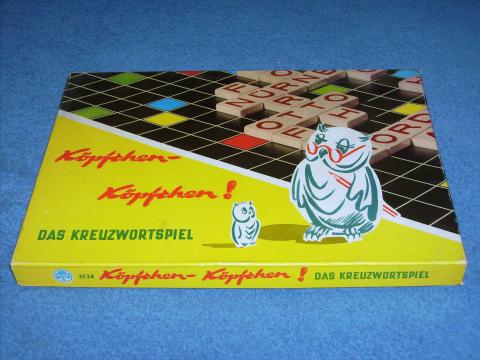 Wortspiel im Scrabble-Stil für 2-4 Spieler ab 10 Jahren Jeder Spieler beginnt mit 7 Konsonanten und 3 Vokalen, jeder versucht allein, daraus ein Hauptwort zu bilden, das längste Wort beginnt, die anderen versuchen, ihre Worte über einen Buchstaben damit zu verbinden, wer keine Steine mehr hat gewinnt, wer kein Wort bilden kann, nimmt 3 Steine dazu, die farbigen Felder sind Ereignisfelder. Altes Logo, daher Zuordnung zu altem Firmennamen