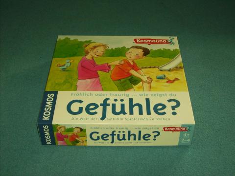 Im Kindergarten ist viel los und auch auf dem Spielplatz tut sich einiges, worüber sich Kinder freuen, ärgern oder wovor sie sich fürchten – wer die vier Grundgefühle Freude, Trauer, Angst und Wut am besten erkennen kann, gewinnt. Der Spielplan wird zu Kindergarten oder Spielplatz zusammengesetzt und mit Kärtchen belegt. Wer dran ist würfelt und alle suchen gemeinsam ein Kind am Plan, dass das erwürfelte Gefühl ausdrückt. Wer das passende Kärtchen findet, nimmt es an sich. Stimmen die Gesichter auf der Rückseite der gewählten Kärtchen mit dem Würfelsymbol überein, bekommt man einen Chip und das Kärtchen wird zurückgelegt. Die Gefühle sind mehrfach vorhanden, aber bei vier Spielern können nicht alle Spieler das Gefühl bekommen. Wird das Gesicht gewürfelt, sucht man sich ein Kärtchen aus, benennt das Gefühl und legt es mit den magnetischen Teilen aus. Stimmt das gelegte Gesicht mit der Rückseite des Kärtchens überein, bekommt man einen Chip. Wer zuerst vier Chips hat, gewinnt. In der Variante Anderen Helfen nützt man auch die Wissensscheibe, auf dem mittleren Rad wird eine negative Situation angezeigt, ein Spieler beschreibt die Situation und versucht, eine positive Situation, wie man helfen kann, auf dem äußeren Rad zu finden. Die richtige Lösung kann auf der Rückseite kontrolliert werden. Eine weitere Variante lässt die Spieler Gefühlssituationen auf dem Plan beschreiben, die Mitspieler müssen sie finden. Mit der Identifikationsfigur Kosmolino wird der Umgang mit Gefühlen geübt, das Spiel gibt auch Tipps wie man im Alltag Gefühle erkennen und ausdrücken kann.