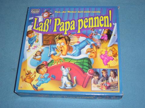 Wer weckt auf dem Weg zum Kühlschrank Papa aus dem wohlverdienten Schlaf und muß zurück ins Bett sprich an den Start, um es gleich nochmals zu versuchen? Ob Papa sich erschrocken aufsetzt, regelt ein Zufallsgenerator und das Ganze macht als so richtig Spaß, Papa schaut verschlafen aus der Zipfelmütze und manche Spielprinzipien lassen sich eben nur in Plastik umsetzen.