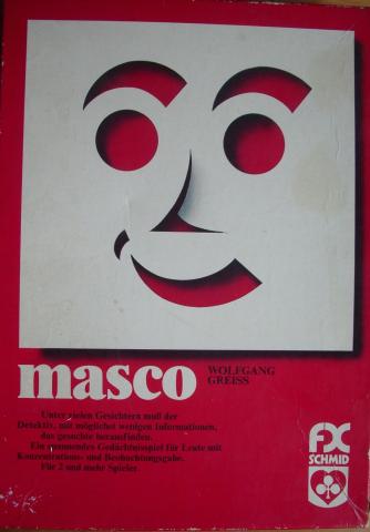 54 Gesichter unterscheiden sich in mindestens einem Merkmal in Hautfarbe und Form von Auge, Mund oder Nase; ein Spieler ist Informat und wählt eine Masco-Karte und eine Farbe aus. Der oder die Detektive wählen eine Maske, der Informant muss so viele Informationsmarken geben wie es gemeinsame Merkmale zwischen der Maske und seiner Karte gibt. Zweimal darf der Informant einen Joker geben und damit Information verweigern.