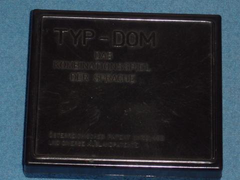 Mat-Dom Prototyp Steine mit handbeschrifteten Ziffernklebern, verpackt in schwarze Plastikschachtel von Typ-Dom Erhalten vom Sohn von Franz Weigl, keine sonstige Zuordnung möglich Ludografische Angaben Verlage: WEIGL FRANZ Autoren: Franz Weigl Inventarnummer: 12729 Kategorien: Legen, Abstraktes Spiel Spieler 2 - 4 Spieler Alter 8 - 99 Jahren Dauer bis 25 Minuten