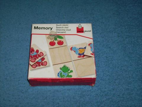 memory Merkspiel, Holztäfelchen, 32 Stück, mit bunten Motiven für Kinder Dieses Spiel ist in folgenden Sprachen veröffentlicht: Deutsch Ludografische Angaben Verlage: Mertenskunst Inventarnummer: 19536 Kategorien: Kinder, Merken, Sammeln Spieler 1 - 4 Spieler Alter 4 - 10 Jahren Dauer bis 10 Minuten