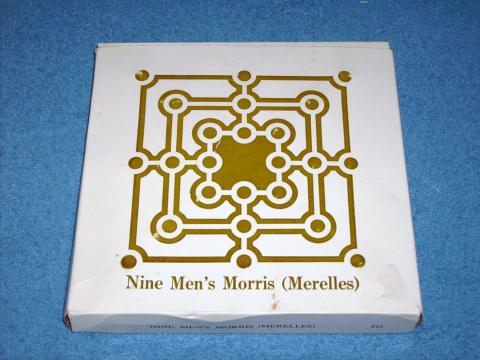 Standard Mühle-Spiel, nicht mit Scheiben sondern mit Steckern in einer Lochplatte. Man beginnt mit der leeren Platte, setzt abwechselnd einen Stein und soll drei gleiche Steine in eine Reihe bekommen. Schafft man dies, kann man einen gegnerischen Stein entfernen, der nicht in einer Dreier-Reihe steht. Hat ein Spieler nur mehr zwei Steine oder kann er sich nicht mehr bewegen, hat er verloren.