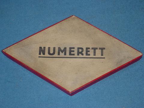 NUMERETT Positionsspiel mit Zahlen Schachtel in Rautenform, handgemachte Figuren aus tonartiger Masse Ludografische Angaben Verlage: WEIGL FRANZ Autoren: Franz Weigl Inventarnummer: 9069 Spieler 2 - 2 Spieler
