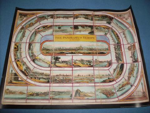 Laufspiel mit Landschaften aus Europa, Spielprinzip Gänsespiel, Ziel in der Mitte Reprint eines Originals aus der Grafik-Sammlung am Institut für Spielforschung der Universität Mozarteum Salzburg