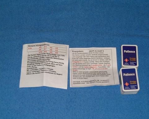 Patience Doppelter Kartensatz mit Sonderregeln Ludografische Angaben Verlage: Berliner Spielkarten Inventarnummer: 12368 Kategorien: Karten Erscheinungsjahr 2001 Spieler 2 - 4 Spieler Alter 8 - 99 Jahren Dauer bis 45 Minuten