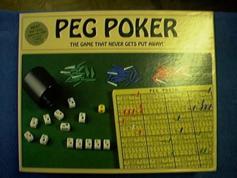 PEG POKER Spielkartenwürfel bestimmen die Kartenhand des Spielers, die Hand wird mit farbigen Steckern auf dem Brett markiert, oder zur Übernahme einger gegnerischen Position benutzt. Bestes Familienspiel 1994 des GAMES magazine. Ludografische Angaben Verlage: WHEELER GAMES Inventarnummer: 10312 Kategorien: Karten, Familie, Würfel Erscheinungsjahr 1994 Spieler 1 - 4 Spieler Alter 8 - 99 Jahren