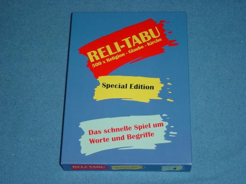 Reli-Tabu Ludografische Angaben Verlage: Erzbischöfliches Jugendamt München-Freising Autoren: Markus Grimm Inventarnummer: 13873 Kategorien: Assoziation, Wort Erscheinungsjahr 2000 Spieler 4 - 12 Spieler Alter 12 - 99 Jahren Dauer bis 45 Minuten