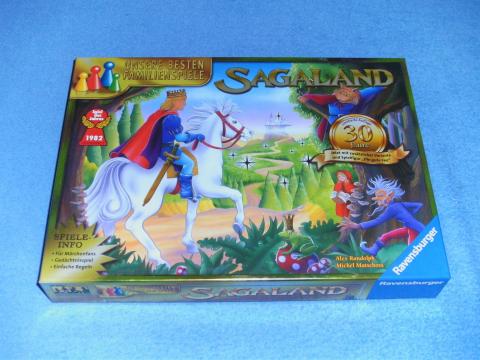 Der König in diesem Spiel ist wie so viele Könige kinderlos, und um seinen Erben zu bestimmen, hat er verkündet: Wer ihm als erster den Weg zu drei Schätzen im wunderbaren und seltsamen Wald von Sagaland zeigen könne, der solle sein Nachfolger werden. Wer dran ist würfelt und zieht, jeder Würfelwurf wird einzeln abgehandelt, man darf in jeder Richtung ziehen, aber immer die gesamte Augenzahl, an fremden Figuren darf man vorbeiziehen. Wer eine andere Figur trifft, schickt diese zurück ins Dorf. Wer genau ein blaues Feld erreicht, darf schauen, was darunter versteckt ist. Wer gefunden hat, was die oberste Karte zeigt, läuft zurück ins Schloss, genau auf das Feld mit dem Schlüssel. Dann nennt man den Baum mit dem gesuchten Schatz und bekommt bei richtiger Lösung die Karte. In der Variante mit der Guten Fee bekommt man die Fee, wenn man eine 7 würfelt und ist sofort noch einmal dran, und die Fee beschützt den Spieler, er darf nicht zurück ins Dorf geschickt werden, solange er die Fee besitzt. Neuauflage in der neuen Serie „unsere besten Familienspiele“ zum 30-Jahr-Jubiläum