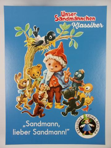 Das Sandmännchen ist seit 60 Jahren täglich in einer Gutenachtgeschichte zu sehen. In diesem Spiel begleitet man den Sandmann auf seinem  Abendspaziergang. Wer eine „6“ würfelt, kann beginnen. Kommt ein Spieler auf eine rote Zahl im weißen Kreis, dann liest er erst den dazugehörigen Vers vor. Danach setzt er seine Spielfigur vor oder zurück, je nachdem es die Spielregel vorschreibt. Wenn alle Mitspieler die 75 erreicht haben, singen die Kinder gemeinsam das Sandmannlied.  Replik, erschienen 1973 bei VEB Spika, DDR