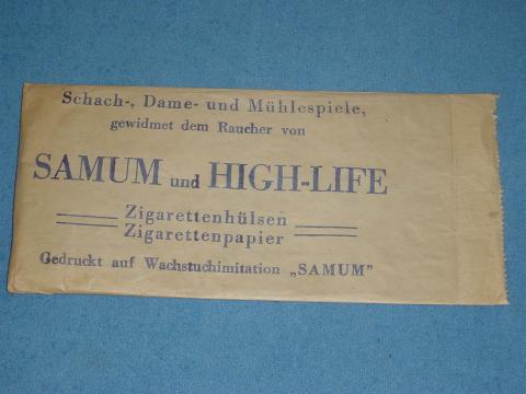 Schach-, Dame- und Mühlespiele Werbespiel von Samum und High-Life Spielsteine sind bedruckte Kartonplättchen, Samum und High-Life sind vermutlich Warennamen oder Markenbezeichnungen. Spielplan ähnelt beschichtetem Karton Ludografische Angaben Verlage: SAMUM Inventarnummer: 9062 Kategorien: Setz-/Position, Werbe, Abstraktes Spiel Spieler 2 - 4 Spieler Alter 8 - 99 Jahren Dauer bis 45 Minuten