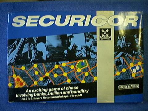 SECURICOR Laufspiel zum Thema Bankraub für Werbespiel für Securicor Ludografische Angaben Verlage: HOUSE MARTIN Inventarnummer: 10609 Kategorien: Familie, Werbe, Rennspiel Spieler 2 - 5 Spieler Alter 8 - 99 Jahren